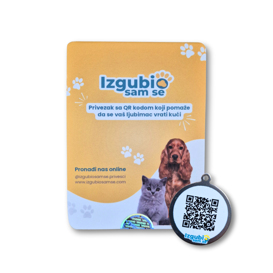 Izgubio sam se Privezak povezuje osobu koja je pronašla vašeg ljubimca sa vama u jednom skeniranju QR koda i daje mu informaciju o tome gde da vrati psa kao i vaše kontakt podatke. Tako umesto nasumičnih pokušaja, dobije tačne informacije i brz način da vas kontaktira.